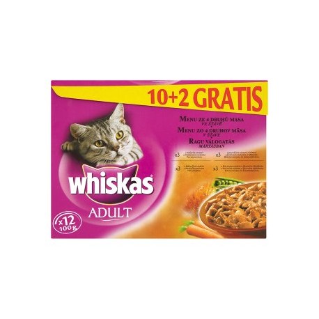 Whiskas Adult Menu ze 4 druhů masa ve šťávě kompletní krmivo pro dospělé kočky 12 x 100g
