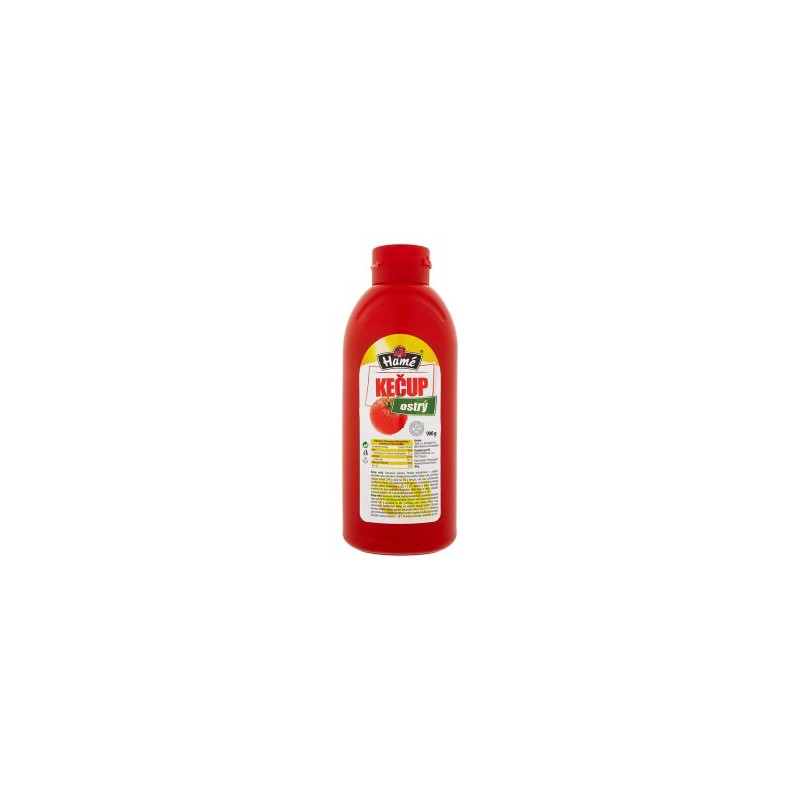 Voda, Zahuštěný rajčatový protlak (140 g rajčat na 100 g kečupu), Cukr, Ocet, Zahušťovadla: modifikované škroby, Sůl, Regulátor kyselosti: kyselina citronová, Kořenící přísada (výtažky koření), Konzervanty E 202 a E 211