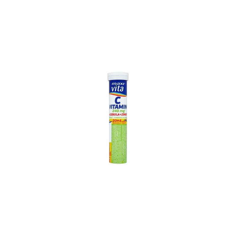 MaxiVita Vitamin C acerola + zinek s příchutí pomeranče & citronu 24 šumivých tablet 59,28g